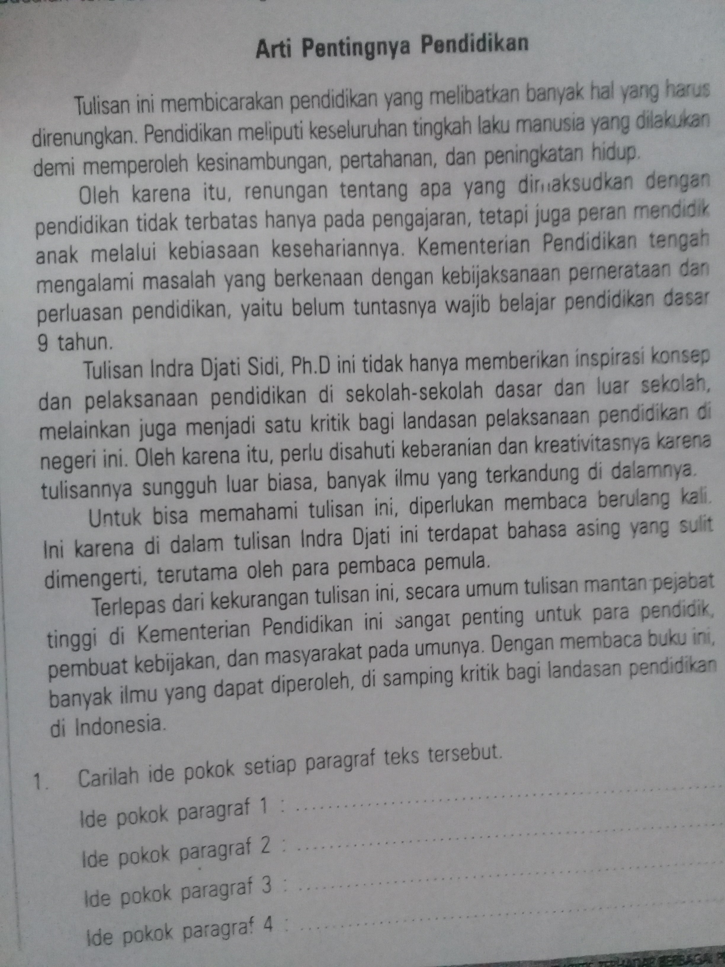 Ide Pokok Pada Paragraf Pertama Adalah : 1 Ide Pokok Paragraf Pertama Adalaha Dasar Diterapkannya Pemadaman Bergilir B Pentingnya Listrik Brainly Co Id : Gagasan pokok adalah ide utama yang dibahas dalam suatu bacaan.. Dalam suatu paragraf atau teks tulis, ide pokok dapat dijumpai dalam kalimat utama. Lebih lanjut, paragraf adalah sekumpulan kalimat dalam suatu teks atau karangan. Kalimat kedua hingga kalimat keempat adalah kalimat khusus yang akan mendukung ide pokok pada kalimat utama. Lepaskan kalimat penjelas dan fokus pada kalimat utama. Kunci jawaban berikut adalah dilansir portal jember dari sofiyani binti mabruroh, s.pd., alumnus iain ponorogo.